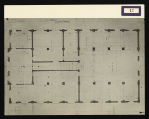 Tre riproduzioni della pianta del primo stabilimento Pirelli di via Ponte Seveso ("fondazioni" e piano terreno), con l'indicazione del posizionamento dei macchinari. Sul verso: timbri "0101", "0102" e "0103". |
