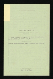 | Note | Titolo attribuito nel Registro documenti storici: "Listino prezzi correnti tessuti impermeabili (Agosto 1880)" |