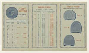 | Ambiti e contenuto | Pieghevole con listino prezzi di tacchi marca "Stella", n. 435 C della Società Italiana Pirelli (al gennaio 1924) |