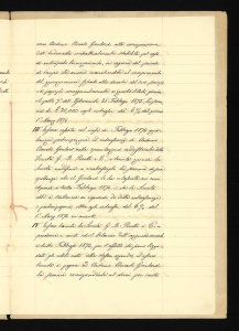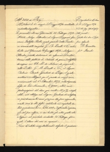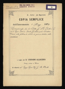 Copia semplice dell'istromento 5 maggio 1874 n. 3031 di repertorio, rogato dal dottor Stefano Allocchio, notaio in Milano, relativo al compromesso per la cessazione del rapporto di lavoro e della partecipazione societaria alla G.B. Pirelli & C. del Direttore tecnico Antonio Amato Goulard, in seguito a citazione del suddetto Direttore presso il Tribunale di Milano in data 22 febbraio 1874. Atto sottoscritto da: Pirelli, Giovanni Battista; Goulard, Antonio Amato; Castelli, Antonio; Trezzi, Ambrogio; Benvenuti, Bartolomeo; Sacchetti, Lorenzo; Osio, Carlo. |