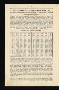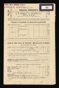 | Ambiti e contenuto | Listino prezzi di foglie, placche, cilindri, rulli e tubi della G.B. Pirelli, F. Casassa & C. relativo al marzo 1880 |