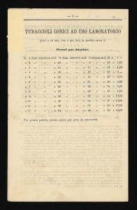 | Titolo originale | "Listino prezzi di foglie, placche, cilindri, rulli e tubi" |