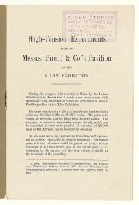 | Titolo originale | "High - tension experiments made in Messrs. Pirelli & Co.'s Pavilion, at the Milan Exhibition" |