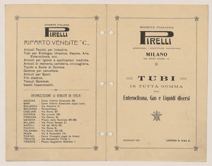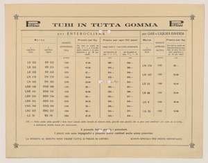Listino prezzi di tubi in gomma per enteroclisma, gas e liquidi diversi, n. 241 C della Società Italiana Pirelli (al gennaio 1921) |