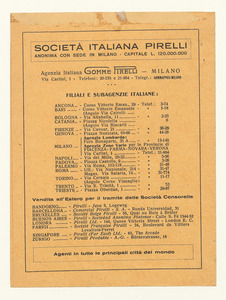 | Note | Titolo attribuito nel Registro documenti storici: "Busta con 22 listini Pneumatici dell'AIPP + 1 libretto istruzioni sull'uso del Superflex Cord" (titolo del fascicolo 1396, l'unità in esame non compare nel Registro documenti storici) |
