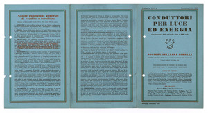 Listino prezzi di conduttori per luce ed energia, n. 1293/A della Società Italiana Pirelli (al dicembre 1935). Il listino è stato ristampato a Milano nel settembre 1937 da Vanzetti e Vanoletti. |