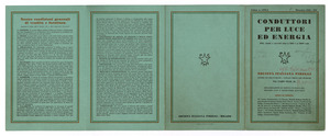 Listino prezzi di conduttori per luce ed energia, n. 1294/A della Società Italiana Pirelli (al dicembre 1935). Il listino è stato stampato a Milano da Vanzetti e Vanoletti. |