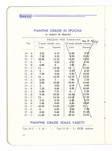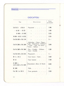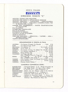 Listino prezzi di spugne ed altri articoli in gomma spugnosa, n. 1253 C della Società Italiana Pirelli - Direzione vendite "C" (all'aprile 1935). Il listino è stato stampato a Milano dalla Società Anonima Antonio Cordani. |