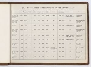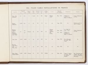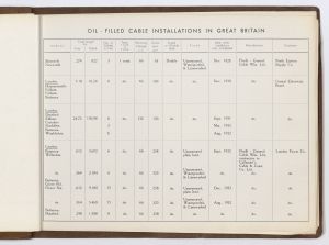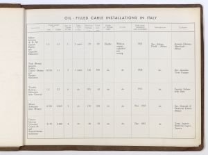 | Ambiti e contenuto | Copia dell'opuscolo "Oil - filled cable installations" della Società Italiana Pirelli, in inglese (al giugno 1938) |