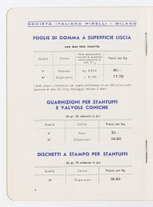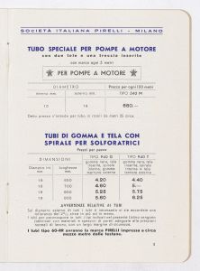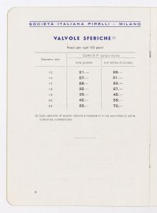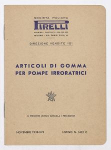 | Ambiti e contenuto | Listino prezzi di articoli in gomma per pompe irroratrici, n. 1402 C della Società Italiana Pirelli - Direzione vendite "C" (al novembre 1938) |