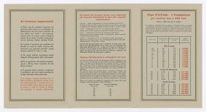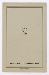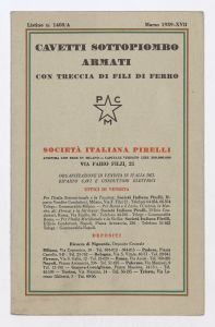 Listino prezzi per cavetti sottopiombo armati con treccia in fili di ferro, n. 1408/A della Società Italiana Pirelli (al marzo 1939). Il listino è stato stampato a Milano da Vanzetti & Vanoletti. |