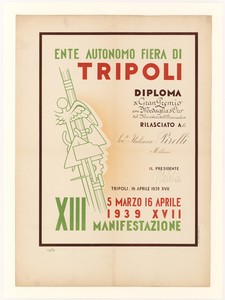 | Notes | Title attributed in the Historical Documents Register: "Grand Prix Certificate and Gold Medal of the Ente Autonomo Fiera di Tripoli (5 March-16 April)". Originally kept in envelope 80. |