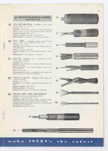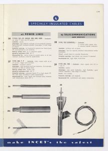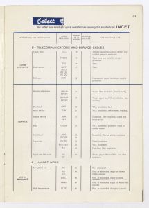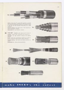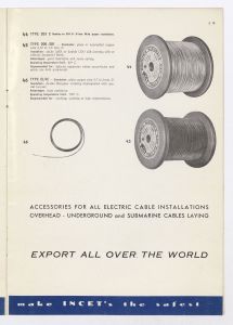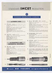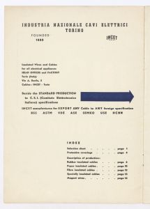 Copia dell'opuscolo "INCET Electrical Wires and Cables Torino". L'opuscolo è stato stampato a Borgo S. Dalmazzo da Bertello. |