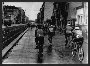 | Descrizione generale del soggetto | Gara finale della seconda edizione del Gran Premio Pirelli disputatasi l'1 ottobre 1950: la manifestazione vide la vittoria del corridore Alfo Ferrari, seguito da Arrigo Padovan e Giancarlo Zucchetti. Le fotografie riprendono le prime fasi della corsa e il Velodromo Vigorelli dove, nel medesimo giorno, si svolgono alcune gare su pista alle quali partecipa anche Fausto Coppi. |