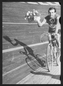 | Descrizione specifica del soggetto | Il vincitore della corsa Alfo Ferrari compie il giro d'onore al Velodromo Vigorelli |