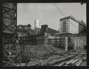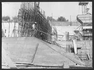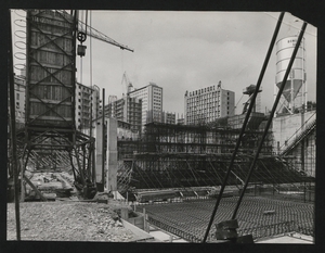 | Descrizione specifica del soggetto | Il cantiere per la Nuova Sede Pirelli: la fitta maglia di armature in acciaio e parte dell'impianto di betonaggio |