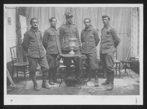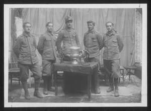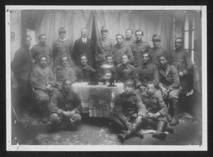 | Descrizione specifica del soggetto | Alcuni militari all'interno di una stanza, radunati attorno a un tavolino rotondo su cui è appoggiata una coppa, presumibilmente uno dei trofei assegnati ai vincitori |