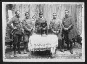 | Descrizione specifica del soggetto | Ritratto di gruppo dei militari vincitori della corsa, insieme a due uomini più anziani: uno in abiti civili e uno in abiti militari, si tratta forse di un ufficiale di alto grado |