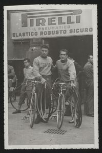 | Descrizione specifica del soggetto | Distribuzione dei tubolari presso "La Gazzetta dello Sport": corridori con altre persone |