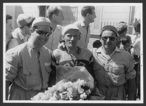 | Descrizione specifica del soggetto | Il vincitore della corsa insieme ad altre persone |