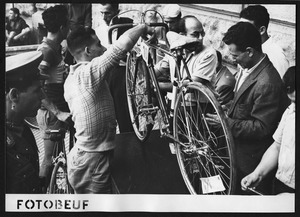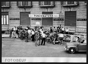 | Descrizione specifica del soggetto | Il banco della punzonatura, posto di fronte alla filiale napoletana della Pirelli: sono ripresi un corridore e alcuni addetti |