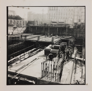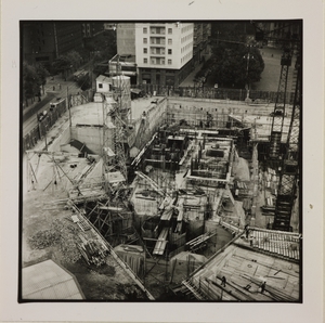 | Descrizione specifica del soggetto | Ottobre 1956, veduta del cantiere del Centro Pirelli: posa delle strutture di fondazione. L'immagine riprende il luogo in cui poi saranno collocati gli ascensori centrali |