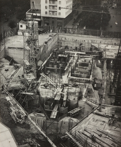 | Descrizione specifica del soggetto | 19 ottobre 1956, veduta dall'alto del cantiere del Centro Pirelli: sono riprese le strutture di fondazione |