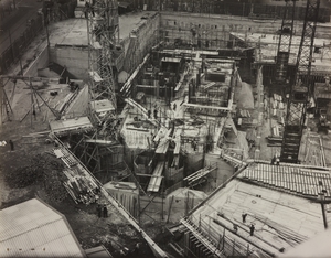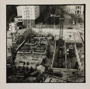 | Descrizione specifica del soggetto | 24 ottobre 1956, veduta dall'alto del cantiere del centro Pirelli: sono ripresi l'impianto di betonaggio, le strutture di fondazione e le gru |