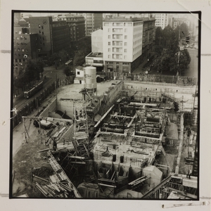 | Descrizione specifica del soggetto | 20 ottobre 1956, veduta dall'alto del cantiere del Centro Pirelli: sono ripresi l'impianto di betonaggio e le strutture di fondazione |