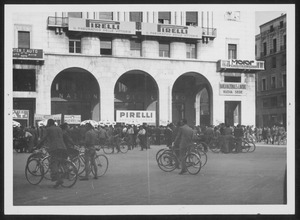 | Descrizione specifica del soggetto | Brescia: striscione Pirelli e cartellone con classifiche della Mille Miglia |