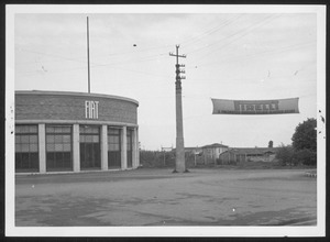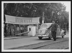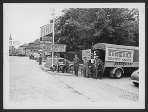 | Descrizione specifica del soggetto | Posto di rifornimento con striscione "Pirelli - Il pneumatico robusto-veloce-elastico-sicuro" |