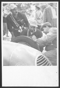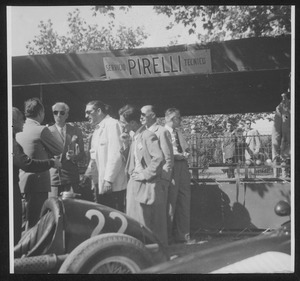 | Descrizione specifica del soggetto | Piero Taruffi parla con il signor Sosit davanti al box Pirelli |