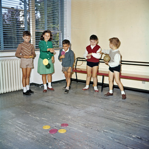 | Descrizione specifica del soggetto | Bambini che giocano alle "piastre" in un parco giochi, probabilmente quello del Villaggio Pirelli di Cinisello Balsamo. La foto è stata utilizzata per il catalogo dei giocattoli del 1957, impaginato da Bob Noorda. |