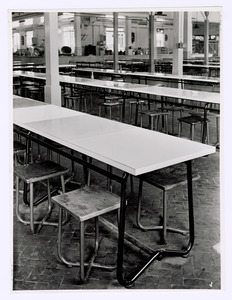 | Descrizione specifica del soggetto | Interno della sala mensa operai. Particolare di tavoli e sedie |