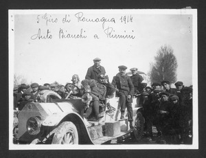 | Descrizione generale del soggetto | V edizione del Giro di Romagna disputatosi il 18 aprile 1914 su un percorso di 306 km: i corridori prima della partenza e durante la gara e lo staff della squadra Bianchi. La manifestazione vide la vittoria di Giovanni Cervi, seguito da Costante Girardengo e Carlo Durante. |