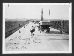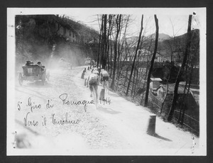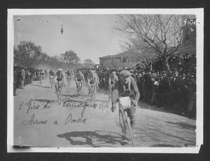 | Descrizione generale del soggetto | Nonostante sia presente l'iscrizione "5° Giro di Romagna", le stampe riprendono, molto probabilmente, momenti dell' VIII edizione della Milano-Sanremo, disputatasi il 5 aprile 1914. La manifestazione vide la vittoria di Ugo Agostoni, che corse con la squadra Bianchi, seguito da Carlo Galetti della Bianchi e da Charles Crupelandt della La Française-Hutchinson. |