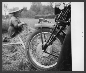 | Full description of the subject | A field with a person working: in the foreground, a Gilera Saturno Sport motorcycle fitted with Pirelli tyres |