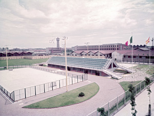 | Descrizione generale del soggetto | I campi sportivi di Bicocca, riammodernati nel 1955 per permettere l'omologazione delle gare di atletica. IIn particolare, vedute della nuova tribuna bifronte affacciata sul campo da hockey e su quello da basket |