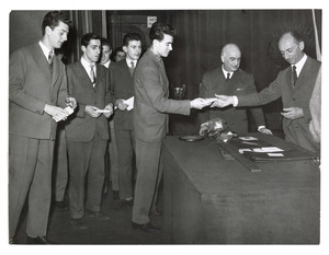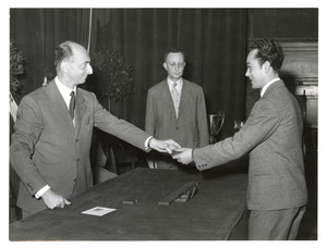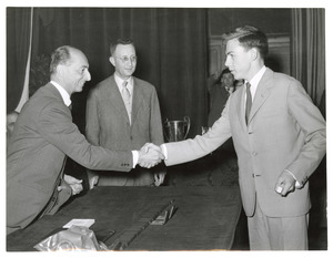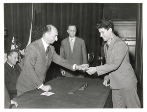 | Descrizione specifica del soggetto | Luigi Rossari premia Giulio Paparelle ed Eraldo Colombo per l'hockey. La fotografia è pubblicata nell'articolo "Festa dell'Atleta" in Fatti e Notizie n. 2, 1955 |