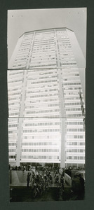 | Full description of the subject | Bicycles and riders in the entrance courtyard of the Pirelli Centre |