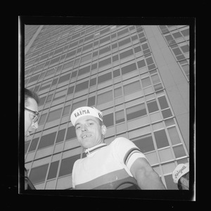 | Full description of the subject | A cyclist of the Faema team in the courtyard of the Pirelli Centre |