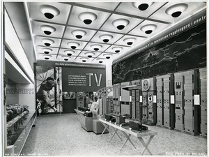 | General description of the subject | Views of several Pirelli stands set up for the 31st Milan Trade Fair in 1953 Display of Pigomma toys, Pirelli silicon rubber insulated cables and a number of machines for television and telegraph broadcasting. |