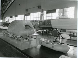 | Descrizione generale del soggetto | Veduta generale dello stand allestito per il I Salone della Nautica di Milano del 1961. Esposizione di battelli pneumatici e barche tra cui: "Levriero", "Giaguaro", "Daino". Visita del Sottosegretario al Turismo On. Gabriele Semeraro. |