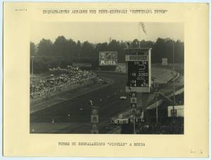| Descrizione specifica del soggetto | La torre di segnalazione Pirelli all'Autodromo di Monza in un momento del Gran Premio d'Italia dell'11 settembre 1955. Fotogramma tratto dai cine-giornali della "Settimana Incom". |