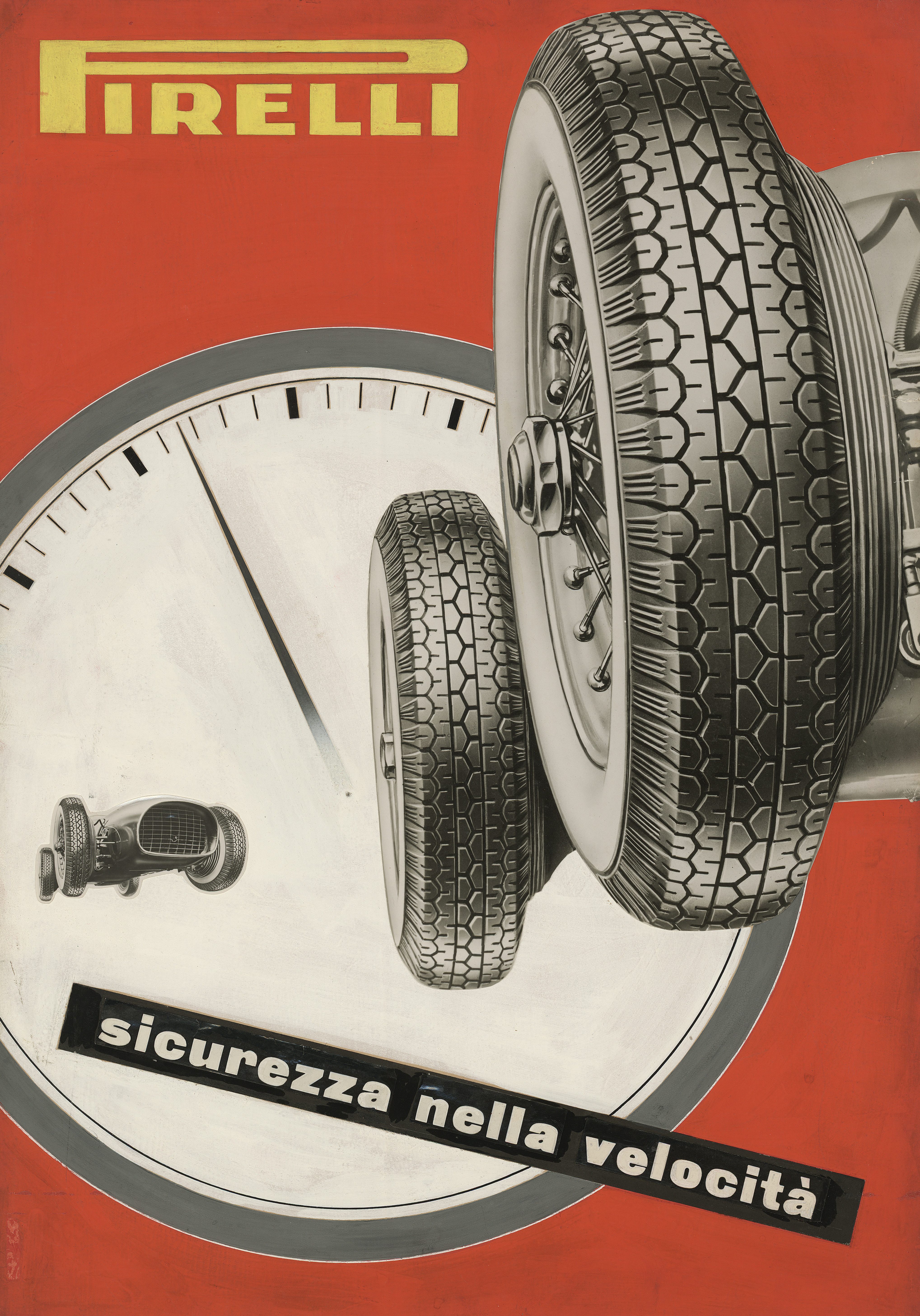 A sense of passion is something that can be found in all of Pirelli’s communication campaigns under the direction of Leonardo Sinisgalli. At a historic time, when motorisation was growing exponentially, the company placed its bets not only on manufacturing increasingly advanced tyres but also on promoting them by bringing in artists and intellectuals who could create a new communication strategy for newsprint, posters, cinema, and direct advertising. The so-called Direzione Propaganda worked across the board to tell the story of the latest models of tyres launched on the market for all manner of vehicles, seasons and driving conditions. To achieve this, Ezio Bonini and Pavel Michael Engelmann’s graphic works were joined by those of Franco Grignani and many other talented artists.