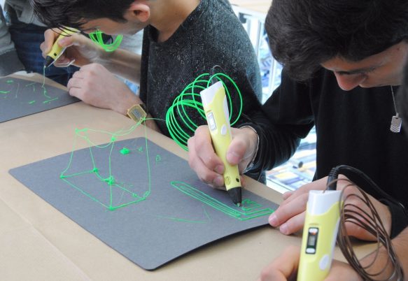 Some of the most popular workshops organised in recent years have been refreshed and made more relevant to today’s world, like the “Factory of the Future”, in which students are invited to draw models of the ideal manufacturing plant using 3-D pens.