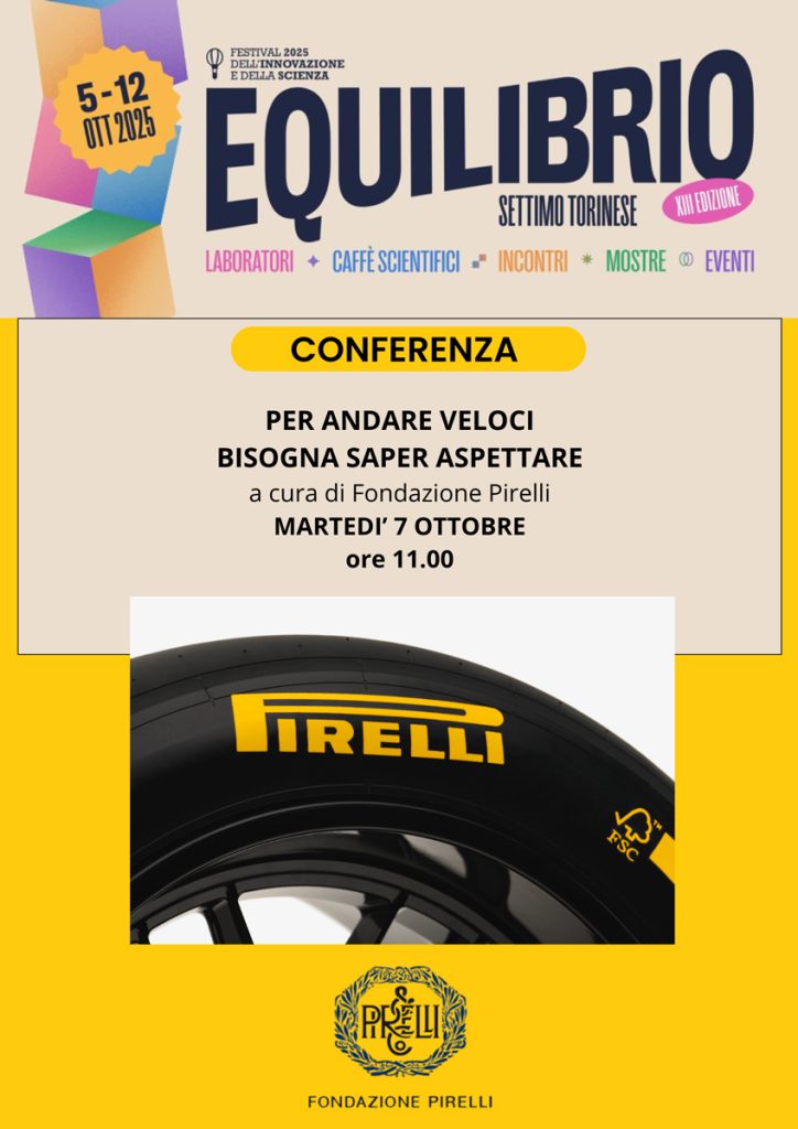 Anche quest’anno Fondazione Pirelli partecipa al Festival dell’Innovazione e della Scienza di Settimo Torinese — giunto alla XIII edizione e dedicato al tema dell’Equilibrio — con una proposta didattica rivolta agli studenti delle scuole secondarie di II grado, per riflettere insieme sulle trasformazioni del mondo produttivo e sull’ambiente: innovazione, sostenibilità, responsabilità e conoscenza.