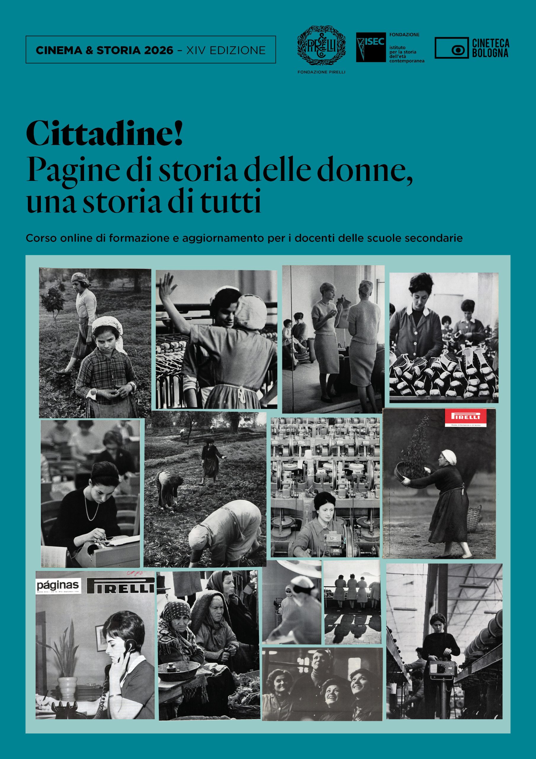 Anche nel 2026 Fondazione ISEC e Fondazione Pirelli promuovono il corso di formazione e aggiornamento per i docenti delle scuole secondarie Cinema & Storia, giunto alla XIV edizione e realizzato in collaborazione con la Cineteca di Bologna. Se la cittadinanza è il fitto intreccio di diritti e doveri che lega ciascuno/a alla propria comunità, “Cittadine!” non affronterà solo alcuni temi di storia delle donne, ma racconterà, a partire da specifici angoli visuali, la storia di tutto il popolo italiano.