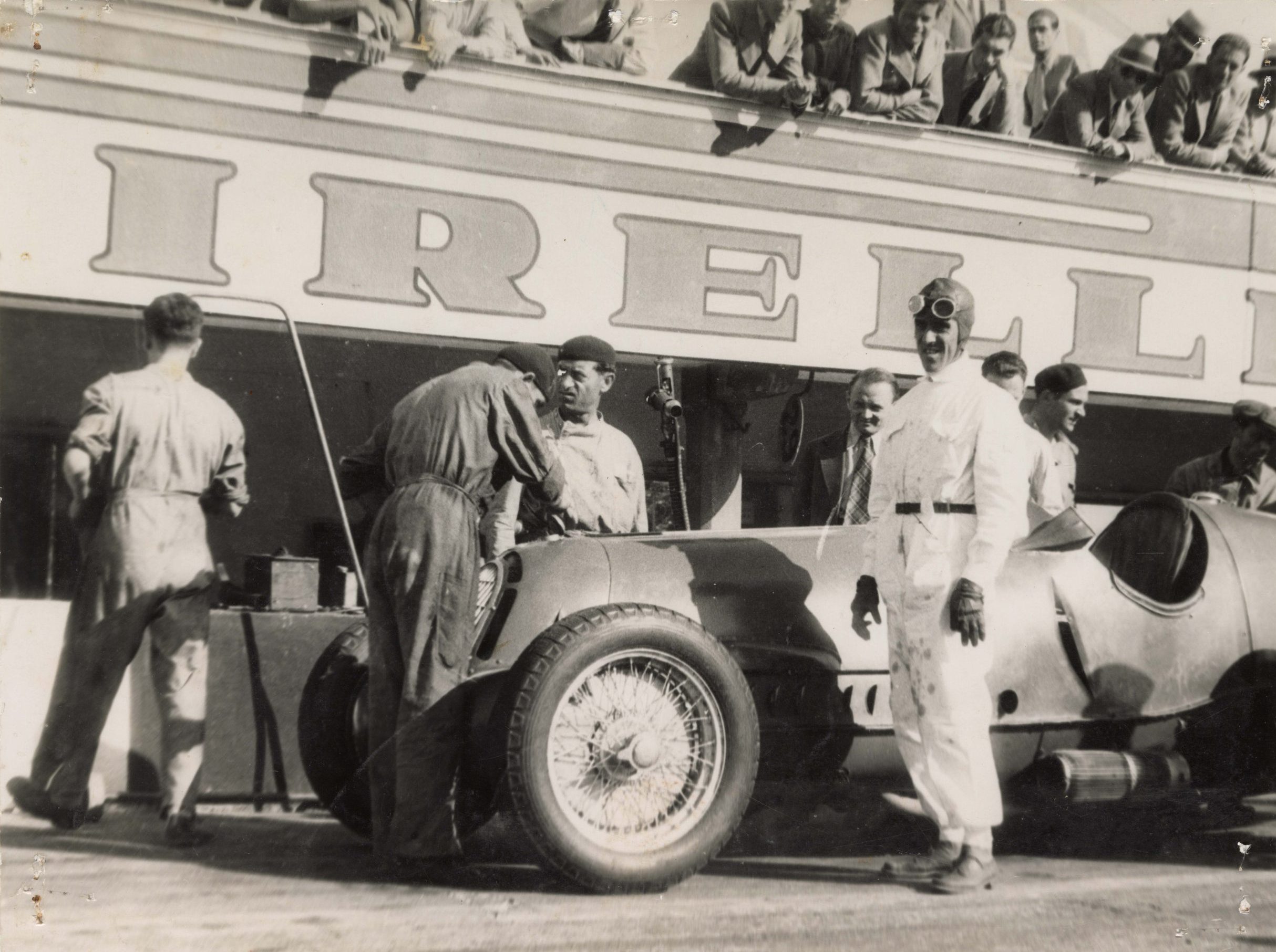 Il binomio Alfa Romeo-Pirelli, istituito sin dalla nascita del “Quadrifoglio”, vede negli anni Trenta, grazie anche alla creazione della Scuderia Ferrari, una stagione di grandi vittorie messe a segno soprattutto da Nuvolari: dalla Mille Miglia (1930) alla Targa Florio (1930 e 1932), ai Gran Premi di Monaco, Francia, Italia (1932) e Germania (1935). Un connubio, quello con Ferrari, testimoniato anche da altre fotografie del nostro Archivio: come quella del pranzo della Scuderia Ferrari nel 1930, la foto di gruppo insieme al ciclista Costante Girardengo, o quella in cui Nuvolari, Ferrari e Mario Umberto Borzacchini avvicinano le loro mani in segno di fedeltà alla Scuderia Ferrari il 22 gennaio del 1933. Un “album dei ricordi” che ripercorre l’intensa storia personale e sportiva di uno dei più grandi campioni di sempre.