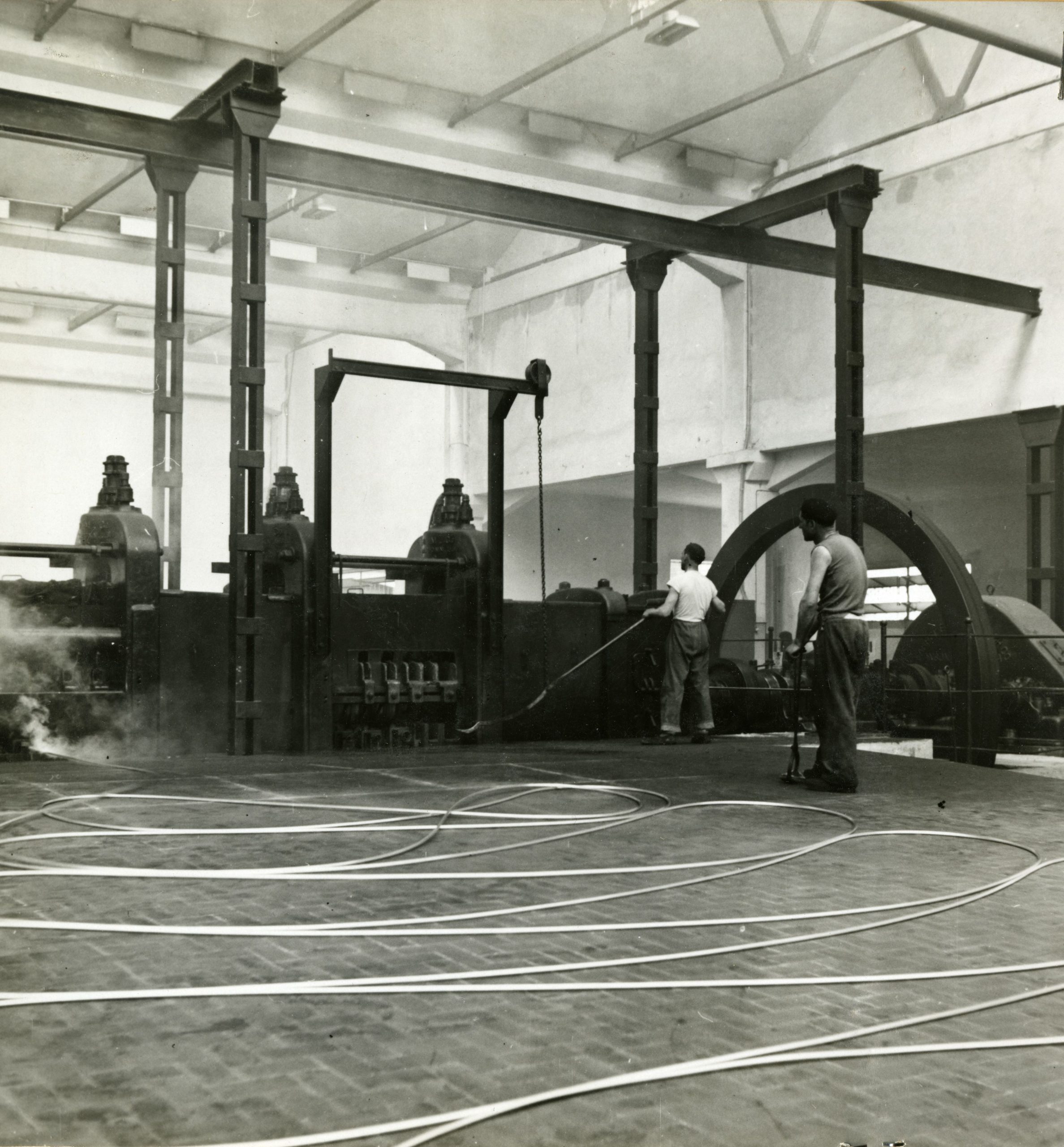 “Questa è la nostra città” è il titolo della sceneggiatura scritta da Alberto Moravia per Pirelli con la collaborazione di Alfredo Guarini, Massimo Mida e Gianni Puccini, e consegnata nell’agosto del 1947, sotto forma di dattiloscritto composto da centonove cartelle, conservate oggi nel nostro Archivio Storico. Era stata l’azienda a commissionargliela direttamente, qualche mese dopo aver confermato Roberto Rossellini alla regia. Il film doveva parlare di industria, operai, lavoro, macchine e città, nella Milano del Secondo Dopoguerra, senza retorica né abbellimenti. Lo si immaginava da proiettare al Velodromo Vigorelli, davanti a 12.000 persone.